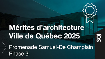 Le projet de la promenade Samuel-De Champlain – phase 3 a été nommé lauréat dans la catégorie Prix du public lors des Mérites d’architecture 2025 de la Ville de Québec.