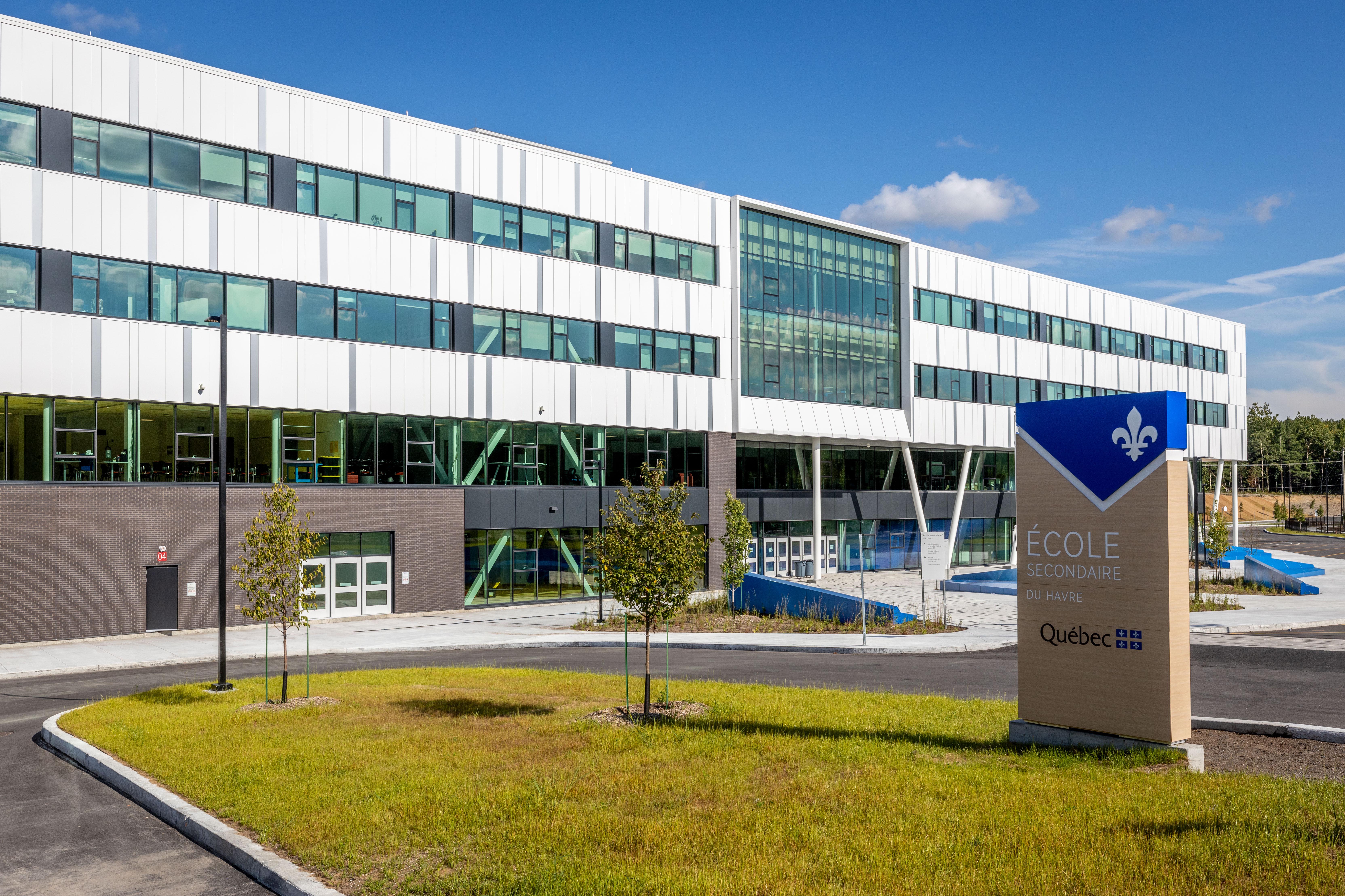 L'école secondaire du Havre à Terrebonne, d'une capacité de 1 256 élèves, offre un environnement sain, moderne et stimulant. Le bâtiment de 21 000 m2 se distingue notamment par sa haute performance énergétique attribuable à une combinaison d'enveloppe performante et de systèmes de chauffage, d'alimentation d'air neuf et d'éclairage efficaces.