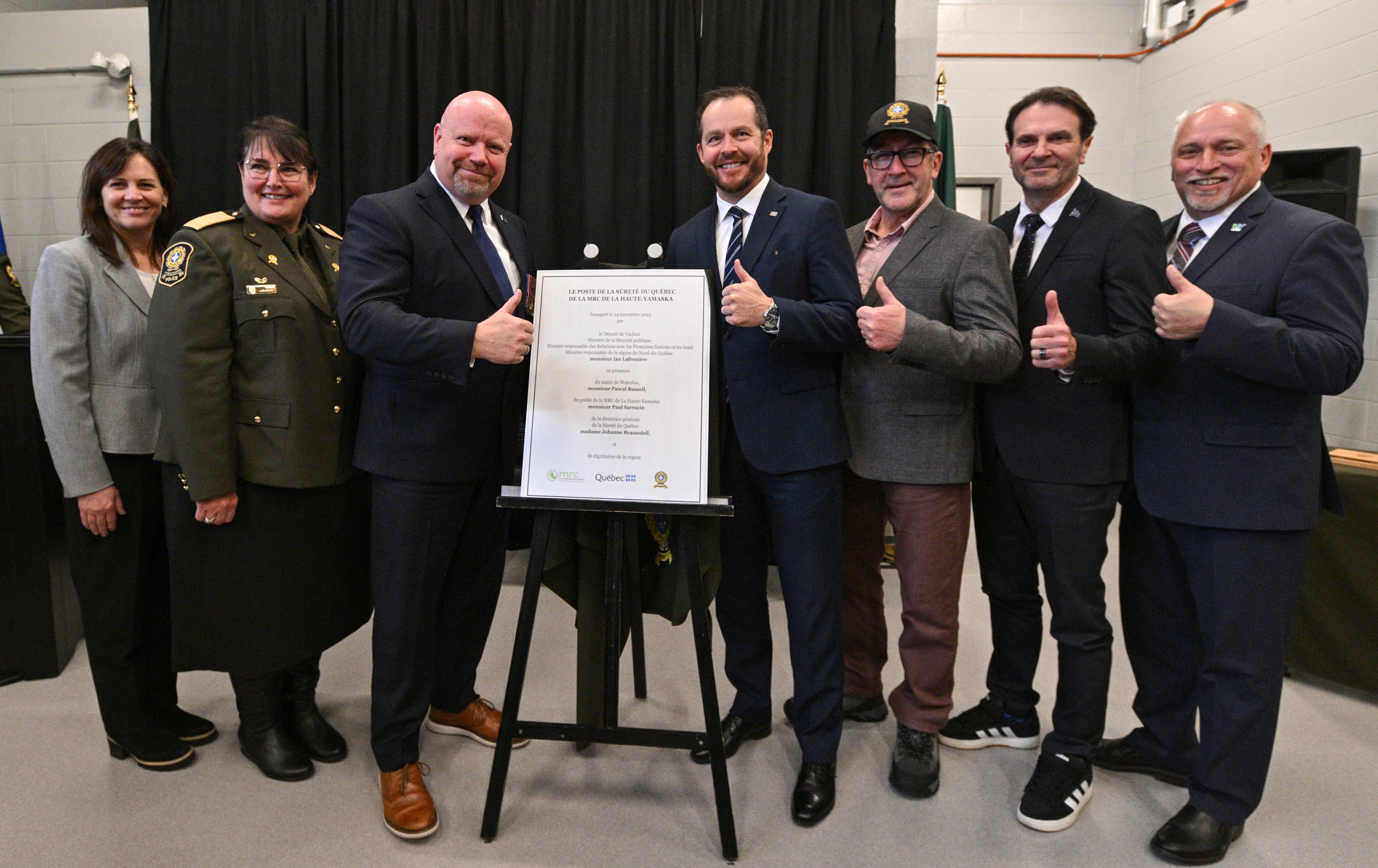 La cérémonie s’est déroulée en présence de plusieurs dignitaires, dont le ministre de la Sécurité publique, monsieur Ian Lafrenière, la directrice générale de la SQ, madame Johanne Beausoleil, le préfet de la MRC de la Haute-Yamaska, monsieur Paul Sarrazin, et le maire de Waterloo, monsieur Pascal Russel.